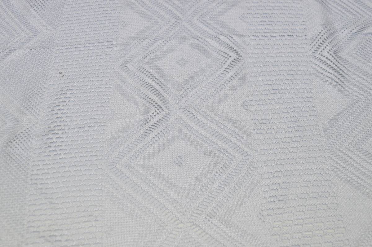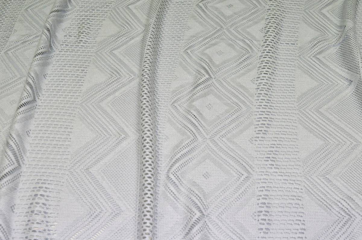La delicata lavorazione traforata ricrea un motivo geometrico a zig zag nei toni del grigio perla chiaro. Ideale sia per capi casual da tutti i giorni che per creazioni più raffinate.