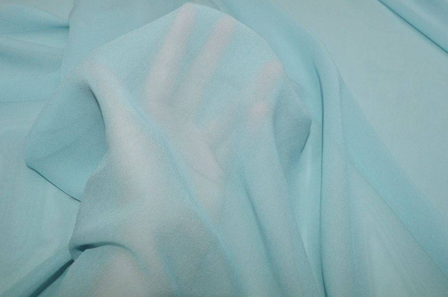 Tessuto georgette di pregiata pura seta, proposto in una delicata tonalità di azzurro chiaro. Questa tipologia di tessuto si distingue dalle altre stoffe per la sua superficie mano crepe, tipica della sua tipologia.