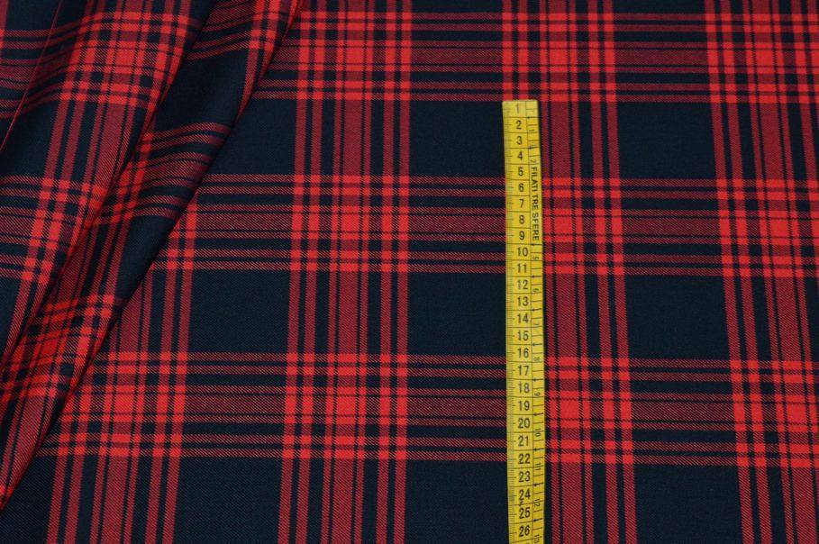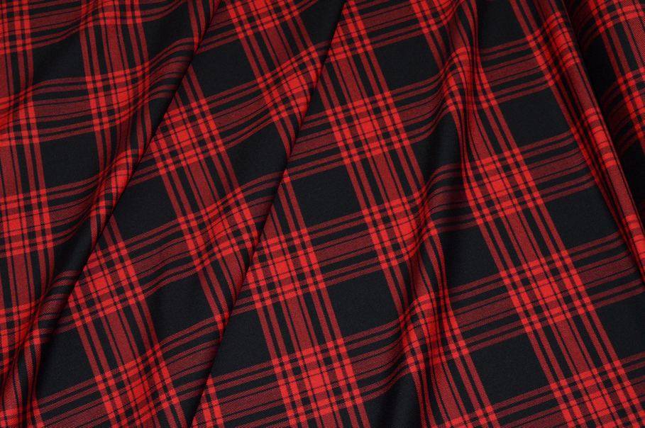 TESSUTO TARTAN LANA STRETCH ROSSO NERO