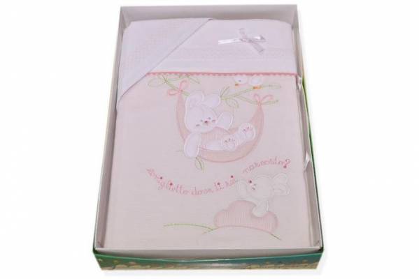 SET 3 PEZZI CULLA DISEGNO CONIGLIETTO AMACA ROSA