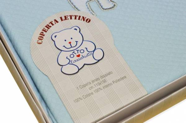 Composizione tessuto esterno 100%cotone, imbottitura 100%poliestere. Misura coperta 110x150 cm.