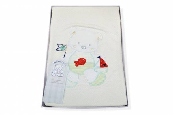 COPERTA CULLA IN JERSEY DOPPIATO PURO COTONE DISEGNO ORSETTO VERDINO