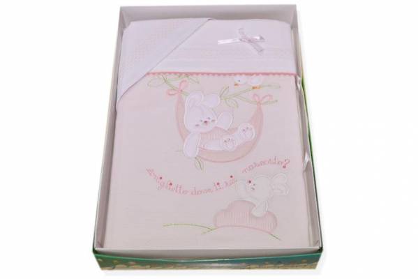 Vendita online biancheria per la casa lettino bimbo set 3 pezzi lettino disegno coniglietto amaca rosa - Tessuti & Stoffe