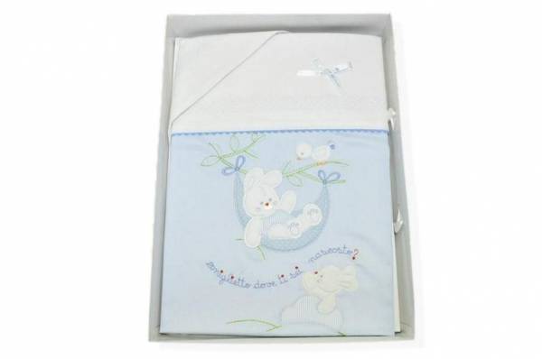 Vendita online biancheria per la casa lettino bimbo set 3 pezzi culla disegno coniglietto amaca azzurro - Tessuti & Stoffe