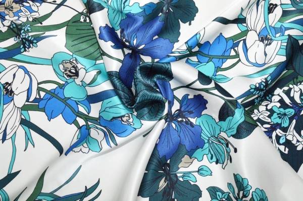 Raffinato raso di pura seta, caratterizzato da una superficie liscia, luminosa e piacevolmente setosa al tatto. La mano risulta fluida e morbida.
