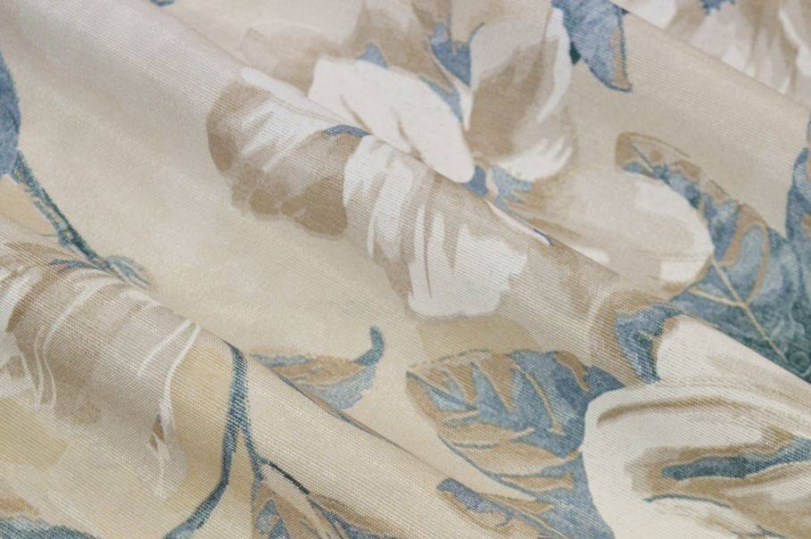 TESSUTO ARREDO FANTASIA MAGNOLIA AZZURRA FONDO BEIGE