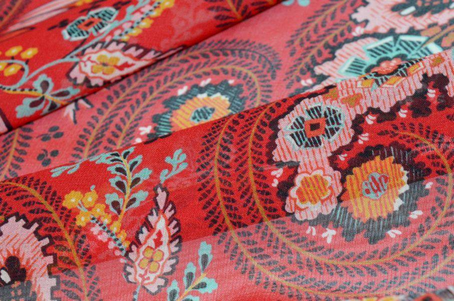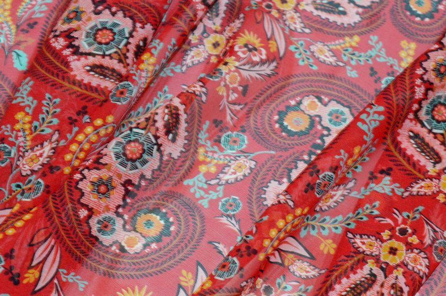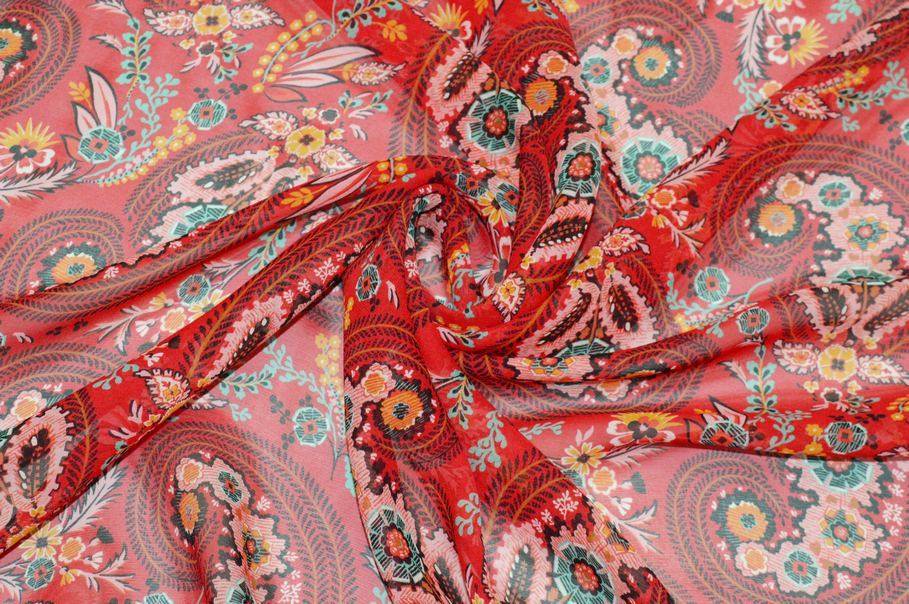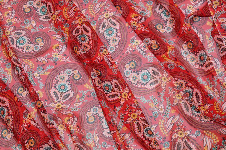 TESSUTO GEORGETTE PURA SETA DISEGNO CASHMERE ROSSO