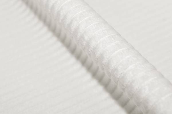 Il tessuto di velluto si distingue per la superficie a coste, formata da righe di tessuto in rilievo. In questo caso si contano 330 righe. Larghezza costa: 4 mm circa.