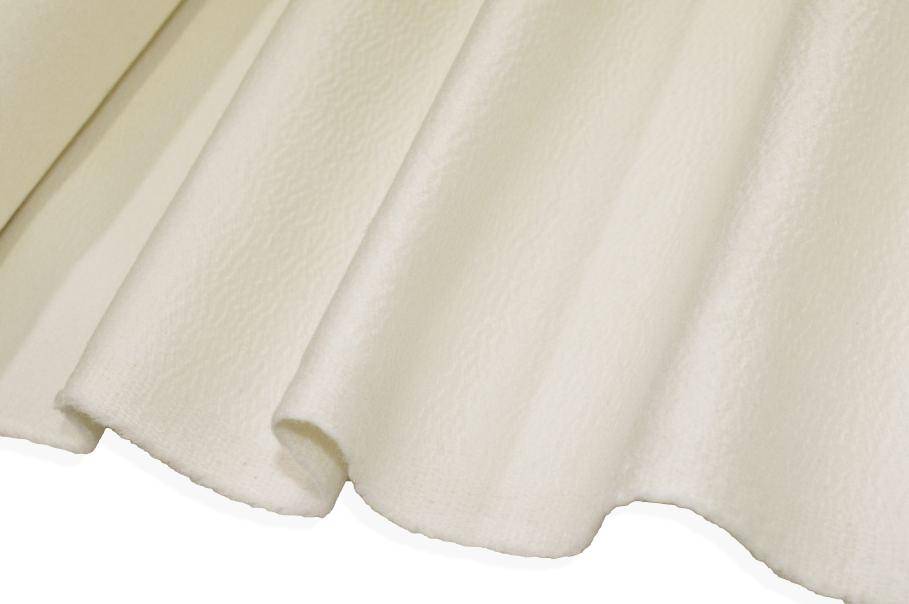 Tessuto di puro cashmere zibellinato panna di mano estremamente morbida e calda. La superficie è soffice e lucente, tipica di questo materiale. Presenta inoltre una bellissima zibellinatura a campo pieno che aumenta il pregio e la bellezza estetica del prodotto.