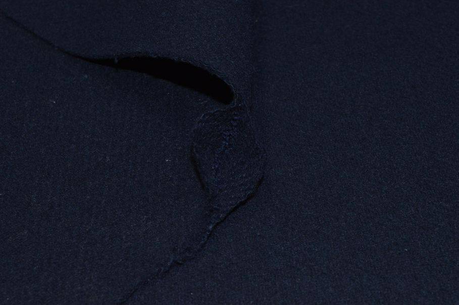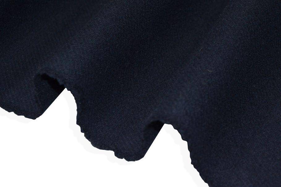 Tessuto double in pura lana colore blu notte, dalla mano calda, avvolgente e morbida. La struttura double nasce dall’unione di due strati di tessuto, facilmente divisibili come mostrato nella foto dimostrativa.