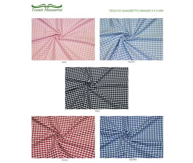 Composizione 100%cotone, altezza cm 150, peso gr 160 al MT lineare. Misura scacco 5x5 mm.