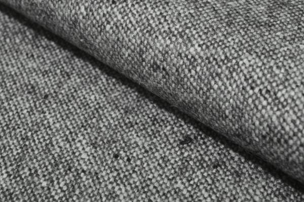 Tessuto in tweed di pura lana, caratterizzato da una mano morbida,leggera e pettinata al tatto.