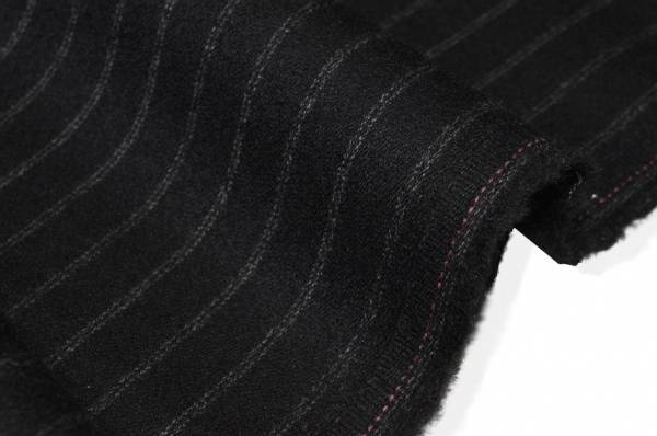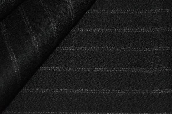 La colorazione scelta è un classico nero arricchito dalla sottile gessatura di 1 cm. E' una stoffa motlo versatile e sempre elegante, perfetta sia per capi dal taglio classico che per proposte più moderne.