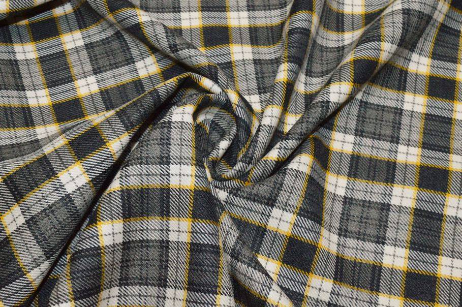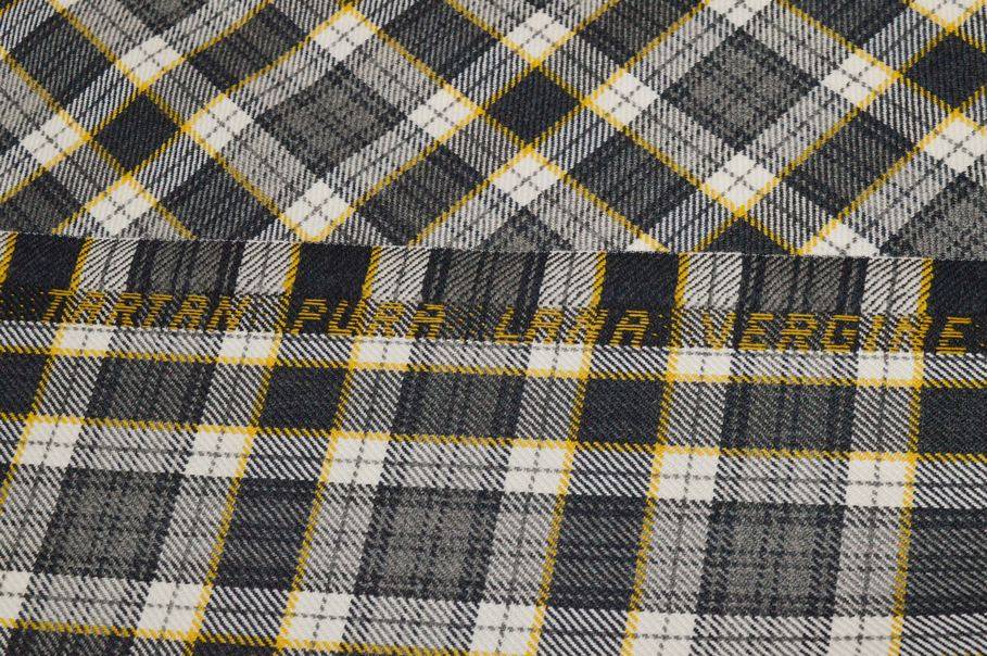 TESSUTO TARTAN PURA LANA GRIGIO RIGA GIALLA