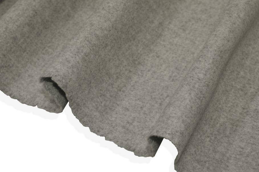Tessuto cappotto double in pura lana colore grigio chiaro melange, dalla mano calda, avvolgente e morbida. La struttura double nasce dall’unione di due strati di tessuto, facilmente divisibili come mostrato nella foto dimostrativa.