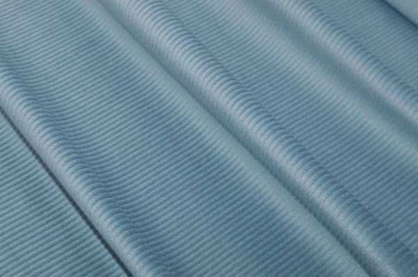 Il tessuto di velluto si distingue per la superficie a coste, formata da righe di tessuto in rilievo. In questo caso si contano 550 righe. Larghezza costa: 2,5 mm circa.