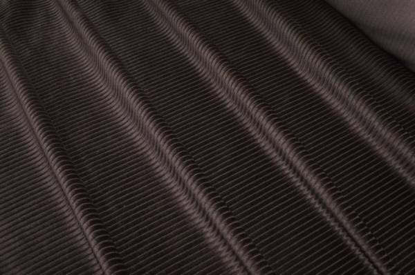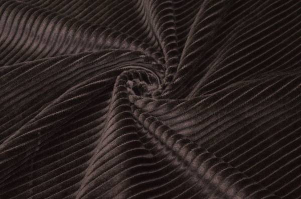 Il tessuto di velluto si distingue per la superficie a coste, formata da righe di tessuto in rilievo. In questo caso si contano 250 righe. Larghezza costa: 5 mm circa.