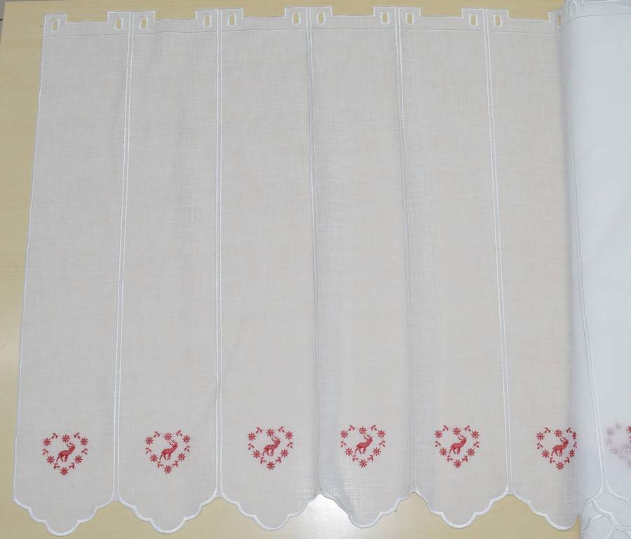 Vendita online tessuti per tende tendine metraggio vetro tendino tirolese cuore cervo rosso altezze cm 90, 150 - Tessuti & Stoffe