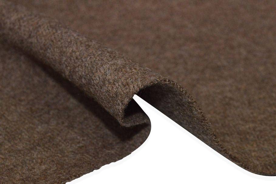 Tessuto jersey pura lana cotta nocciola, morbida e confortevole, caratteristica tipica dei jersey, ma con effetto infeltrìto tipico della lana cotta.