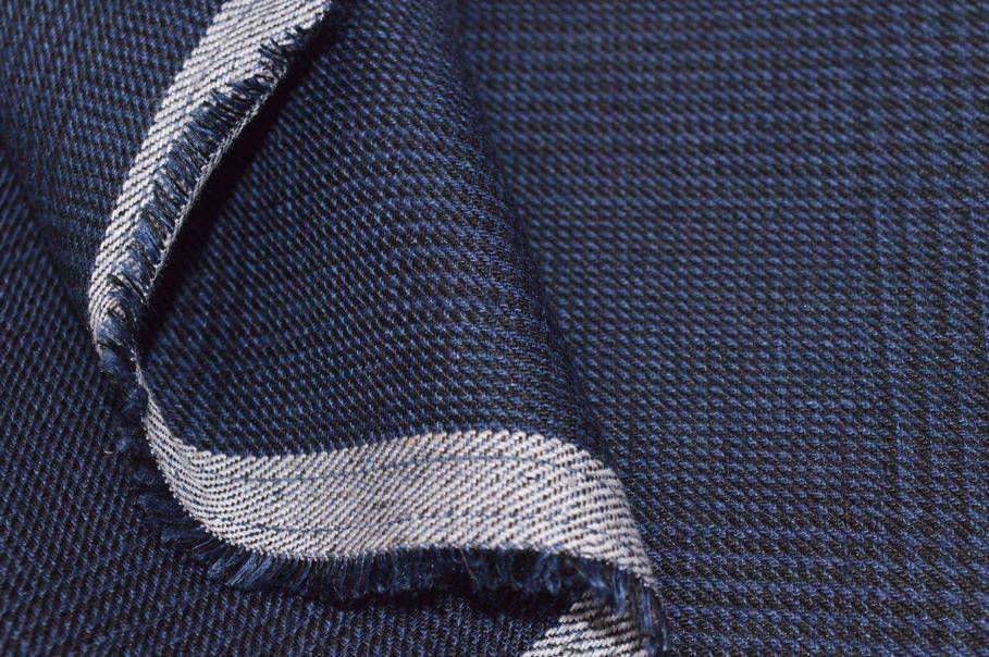 TESSUTO PURO LINO PRINCIPE DI GALLES BLU
