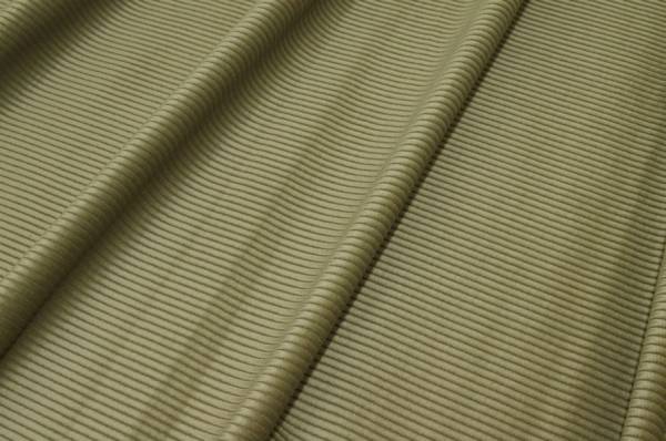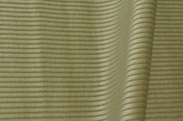 Il tessuto di velluto si riconosce per la sua superficie a coste, caratterizzata da file in rilievo: in questo caso se ne contano circa 450, con una larghezza di circa 3 mm ciascuna. Un ulteriore elemento distintivo è l’elegante luminosità della superficie, accompagnata da una mano estremamente morbida, tipica delle stoffe vellutate.