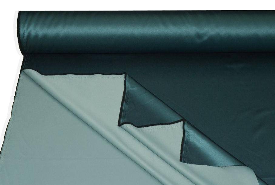 La struttura double face consente di utilizzare il tessuto da entrambi i lati: un lato presenta una superficie più lucida, mentre l’altro è leggermente opaco, permettendo giochi di luce e texture differenti secondo le esigenze estetiche.