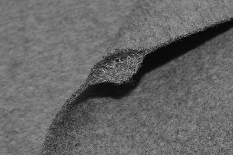 Pregiato tessuto in misto lana e cashmere grigio, caratterizzato da una mano straordinariamente morbida e calda. La superficie risulta vellutata e leggermente luminosa, conferendo un aspetto raffinato al capo finito.