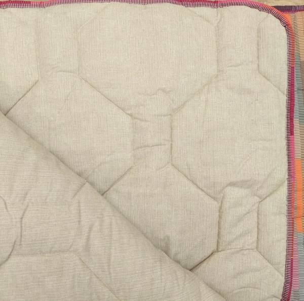 Composizione tessuto 100%cotone stampato, imbottitura 100%fibra anallergica di poliestere da 300 gr/mq. Misura 170x260cm.