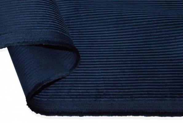TESSUTO VELLUTO PURO COTONE A COSTE 500 RIGHE BLU