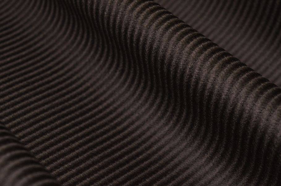 Velluto in puro cotone caratterizzato da una struttura a coste regolari, con circa 480 righe in rilievo da 2 mm di larghezza. La superficie si presenta morbida al tatto e delicatamente luminosa, tipica delle stoffe vellutate di qualità.