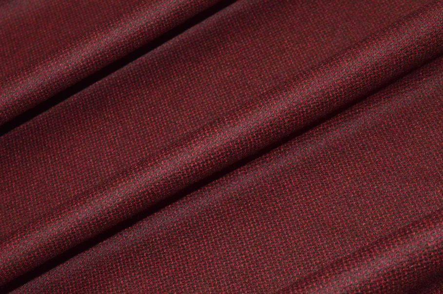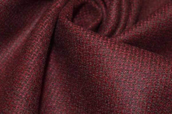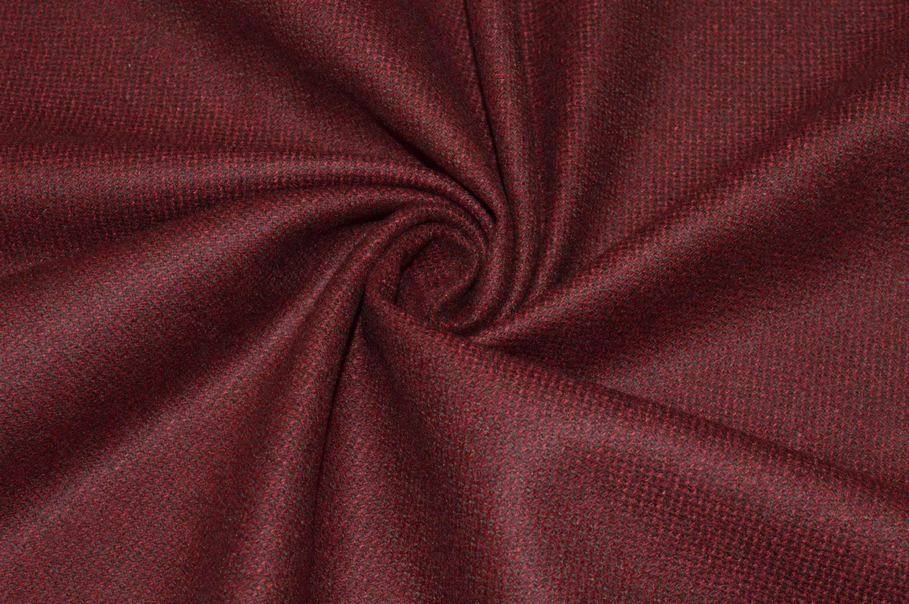 La trama della stoffa nasce dall’unione di due fili di colore differente che creano un fondo rosso india con un delicato effetto micropuntinato molto originale.