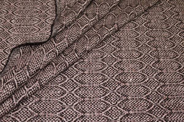 La trama presenta una raffinata lavorazione tramata con filo lurex color argento, che dona al tessuto un effetto luminoso ed elegante, senza risultare eccessivo.