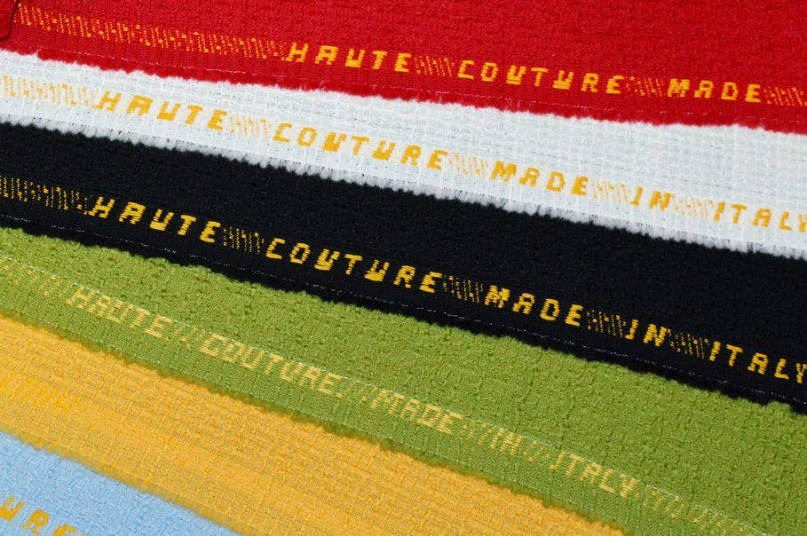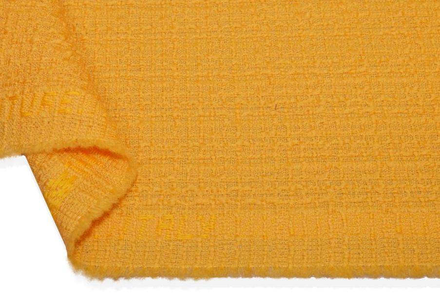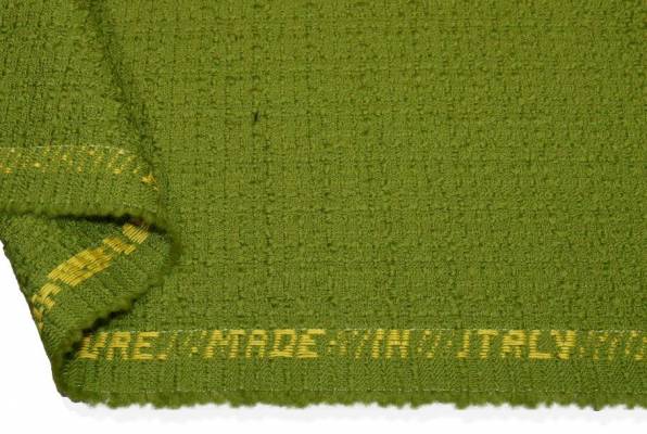 Tessuto Chanel 100%Made in Italy realizzato interamente in pura lana, caratterizzato dalla tipica trama distintiva di questa tipologia di tessuto che consiste nell’intreccio dei filati ben visibile e in rilievo, per un effetto movimentato, irregolare e leggermente granuloso.