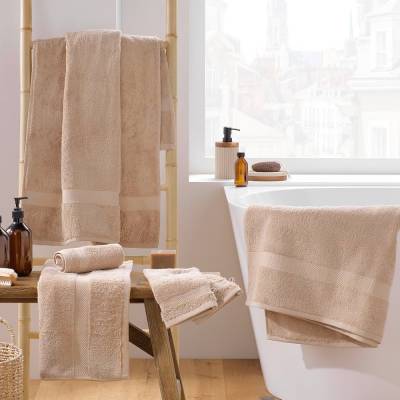 Composizione 100%cotone, misura asciugamano 55x100 cm + ospite 40x60 cm. Peso 450 gr/m2.