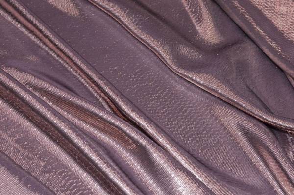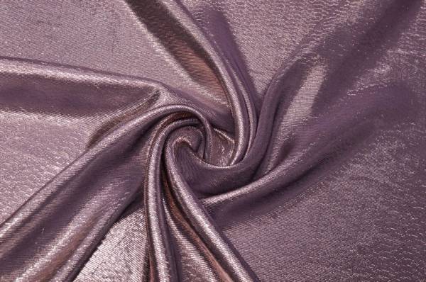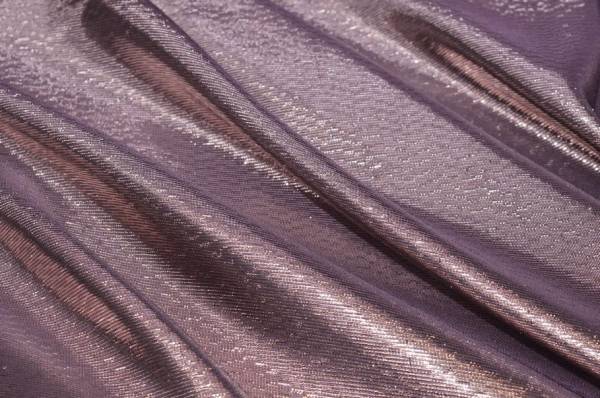 La sua peculiarità è la superficie interamente luminosa, ottenuta grazie ai filati in lurex che creano un raffinato effetto metallico su fondo lilla, con riflessi delicati e cangianti. Indicato per la realizzazione di top, abiti corti o lunghi, gonne e accessori moda capaci di valorizzare il look con eleganza e luminosità.