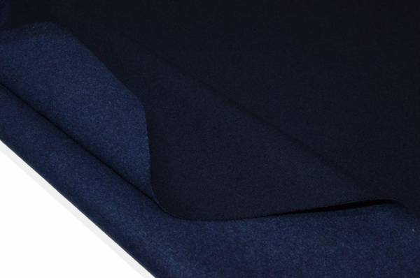 La struttura double, ottenuta dall’unione di due strati di tessuto, dona un doppio dritto permettendo di utilizzare la stoffa da entrambi i lati: il primo di un blu più intenso, il secondo in una tonalità di blu più chiara. Il tessuto è divisibile, come da foto dimostrativa.