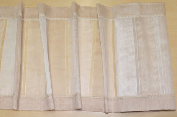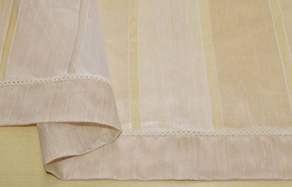 Vendita online tessuti per tende tendine metraggio vetro tendino in organza misto lino rigone beige - Tessuti & Stoffe