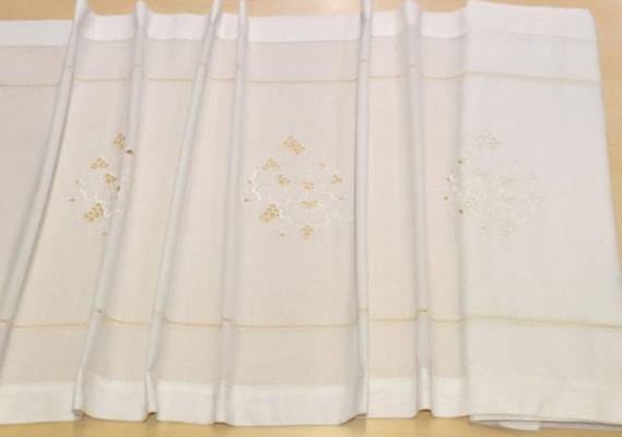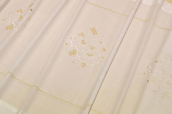 Il ricamo misura 18x19 cm e la distanza tra i motivi è di 23 cm, creando un effetto decorativo armonioso e luminoso. Questo tendino dona agli ambienti un tocco elegante e raffinato.
