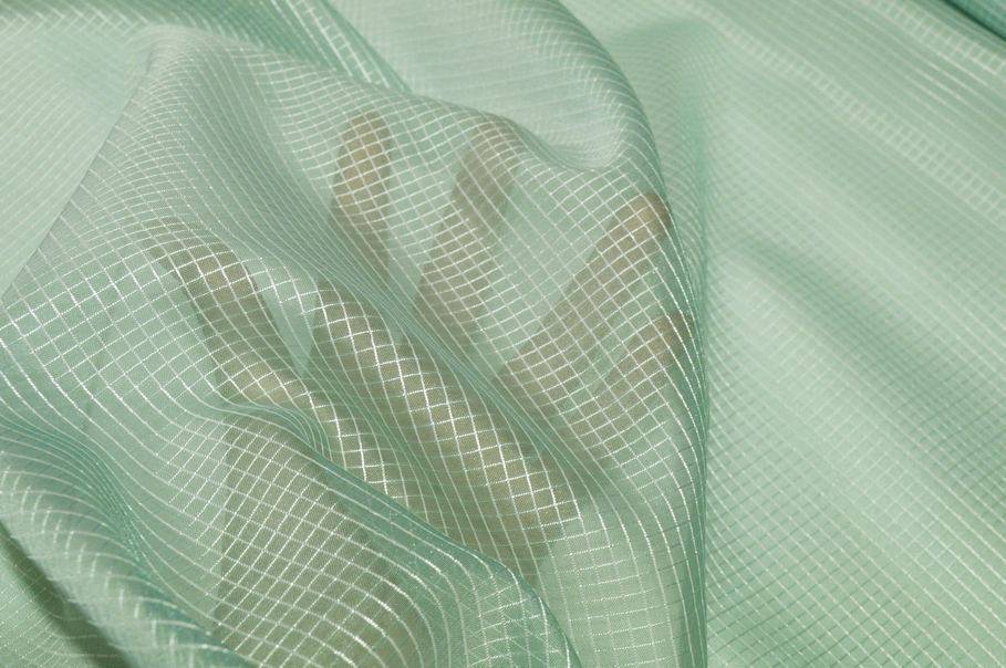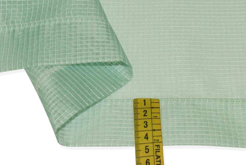 Tendino in organza leggera e luminosa, con fantasia a quadretti verde, perfetto per arredare gli ambienti con freschezza ed eleganza.
