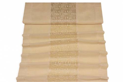 Il tessuto è composto da fasce orizzontali alte 17 cm, per questo motivo il taglio è obbligato e deve seguire il passo fisso di 17 cm della stoffa. Ogni fascia è già provvista di anelli in tessuto per l’inserimento dell’astina della tenda e presenta nella parte inferiore uno smerlo decorativo con frange, pertanto non necessita di ulteriori rifiniture.