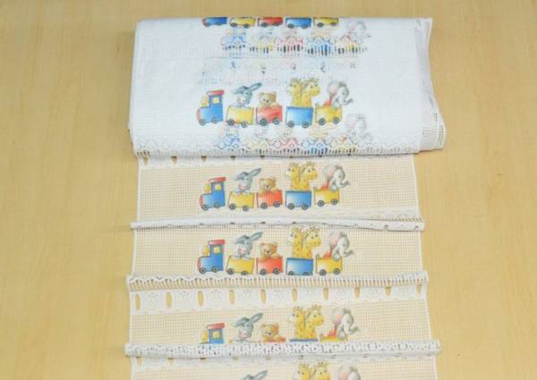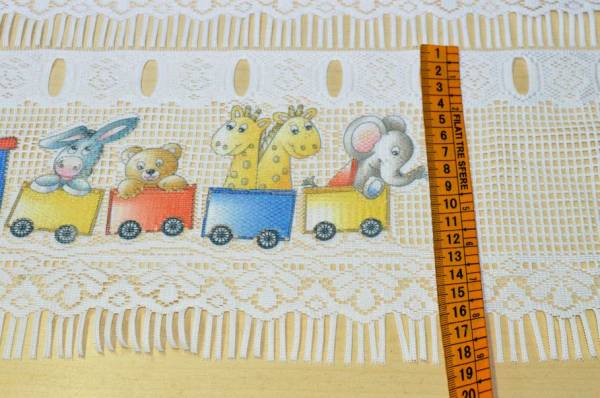 Tendino ricamato con disegno trenino, realizzato in tessuto semitrasparente, leggero e luminoso, ideale per filtrare la luce con delicatezza e creare un’atmosfera accogliente. Il motivo ricamato dona un tocco originale all’ambiente, perfetto per camerette e spazi dedicati ai più piccoli.