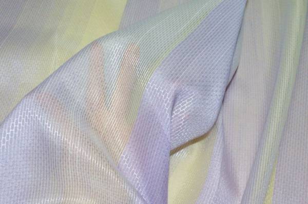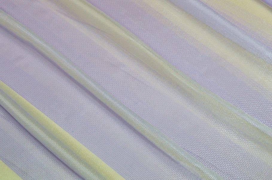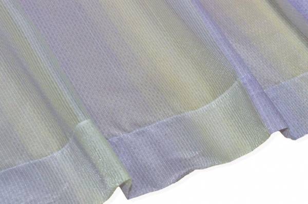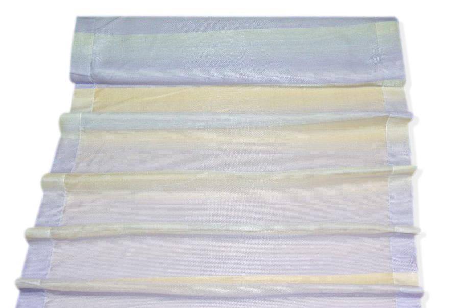 Tendino in organza a fasce orizzontali color lilla, caratterizzato da un elegante effetto sfumato che passa gradualmente dal lilla più intenso a tonalità più chiare fino a zone trasparenti. Questo gioco di colore e luce crea un aspetto delicato e raffinato, ideale per valorizzare ambienti luminosi con leggerezza e stile. La banda laterale misura 5 cm.
