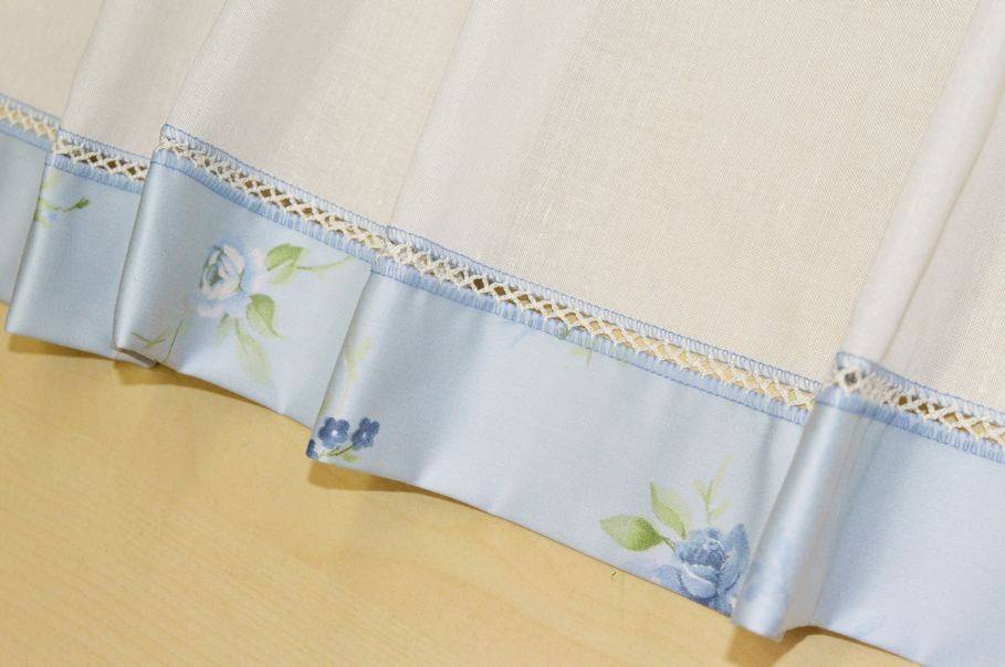 Vendita online tessuti per tende scampoli scampolo tendino bianco con bordo floreale azzurro - Tessuti & Stoffe