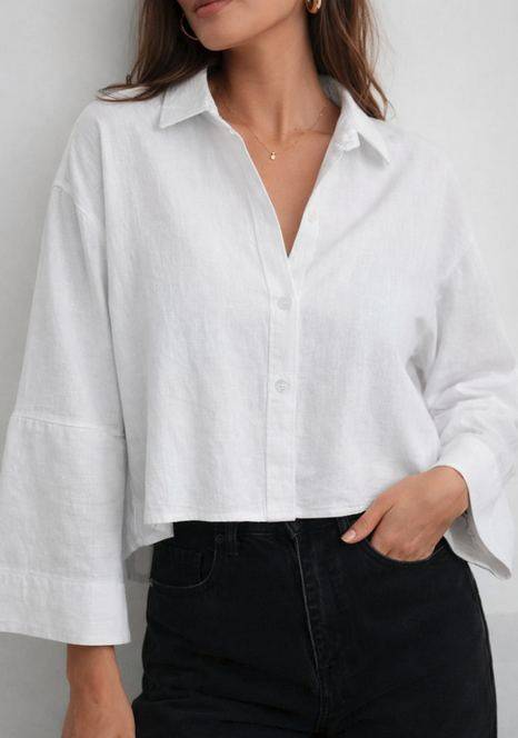 Ottimo tessuto in puro lino da camiceria bianco, dalla mano piacevolmente leggera e fresca, ideale per la stagione primavera/estate. La superficie si distingue per un fondo luminoso e uniforme, che esalta la purezza del colore donando al capo un aspetto naturale ed elegante.