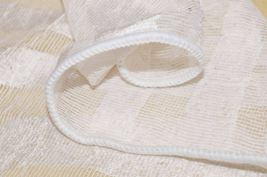 Vendita online tessuti per tende scampoli scampolo tenda organza avorio con fantasia a strisce - Tessuti & Stoffe