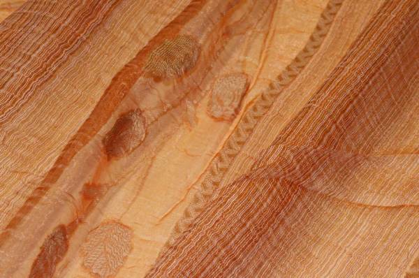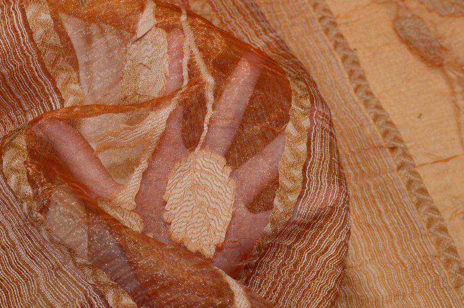 Splendido tessuto in organza idoneo per la realizzazione di tendaggi dalla mano cadente e leggera unita ad un aspetto semitrasparente e filtrante alla luce. Il fondo alterna fasce di differente coprenza permettendo alla luce di filtrare, ma mantenendo un buon livello di privacy nell'ambiente Il fondo presenta una lussuosa ed elegante colorazione arancio impreziosita dai ricami floreali in fill coupe i quali donano finezza e luce alla stoffa. Superficie con effetto stropicciato. Ideale per creare tutte le tipologie di tende arricciate.