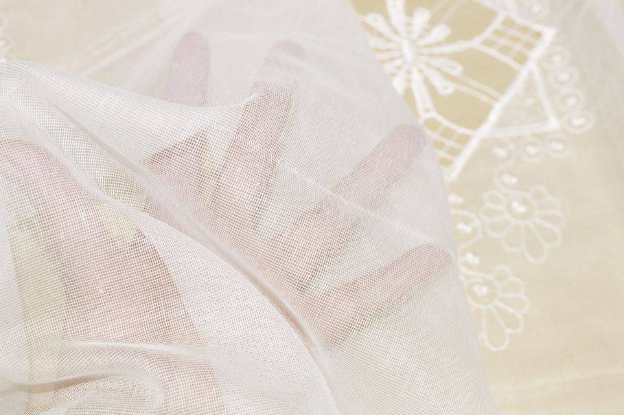 TESSUTO TENDA TULLE CON RICAMO PANNA