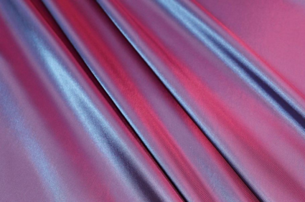 Nella variante fucsia cangiante blu, il tessuto offre un aspetto dinamico e luminoso, rendendolo ideale per aggiungere dettagli eleganti e sofisticati agli interni dei capi.