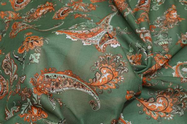 Vendita online cotoni fantasie varie tessuto batista puro cotone disegno cashmere arancio e verde - Tessuti & Stoffe