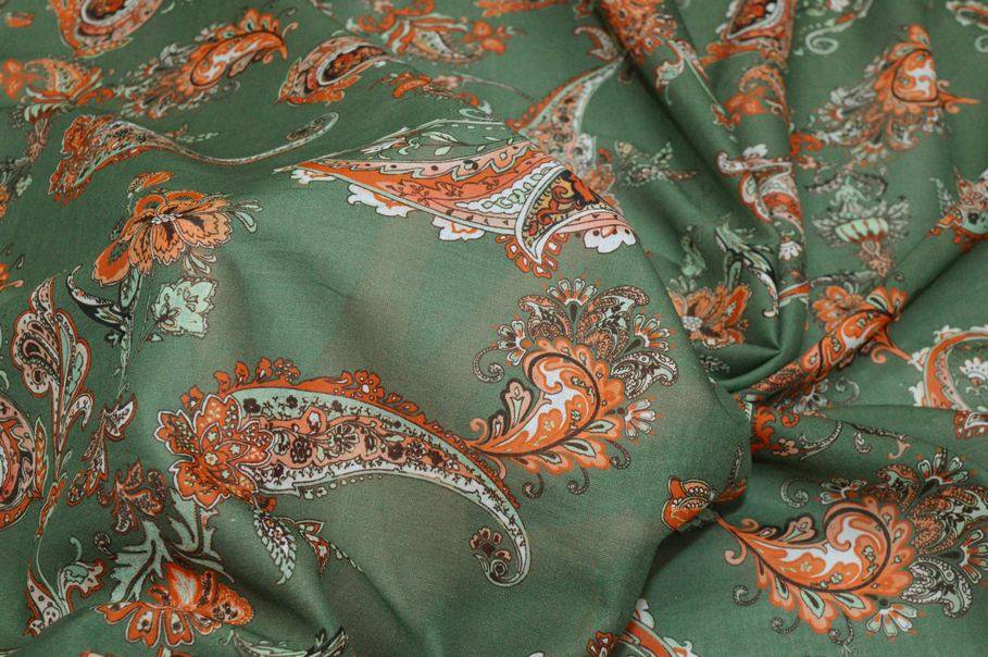 TESSUTO BATISTA PURO COTONE DISEGNO CASHMERE ARANCIO E VERDE
